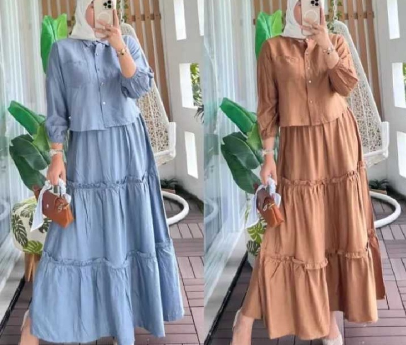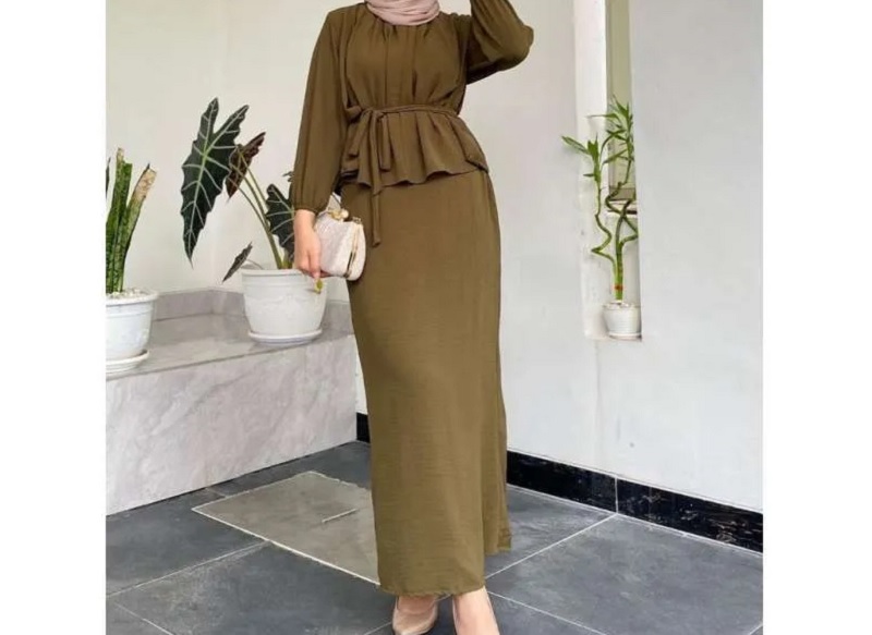 Bagi yang ingin tampil feminin, setelan crinkle dengan rok panjang adalah jawabannya. Rok dengan potongan melebar ke bawah memberikan efek lembut saat berjalan, ditambah atasan yang menyesuaikan bentuk tubuh. Cocok dikenakan di acara semi-resmi seperti lamaran atau undangan makan malam.