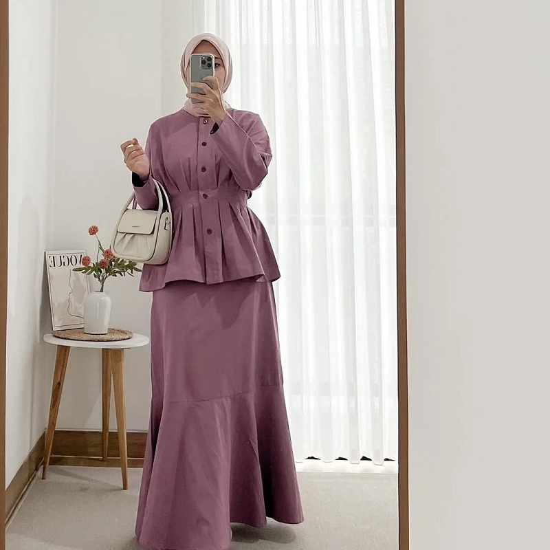 3. Baju Lebaran One Set Wanita Model Peplum dan Rok