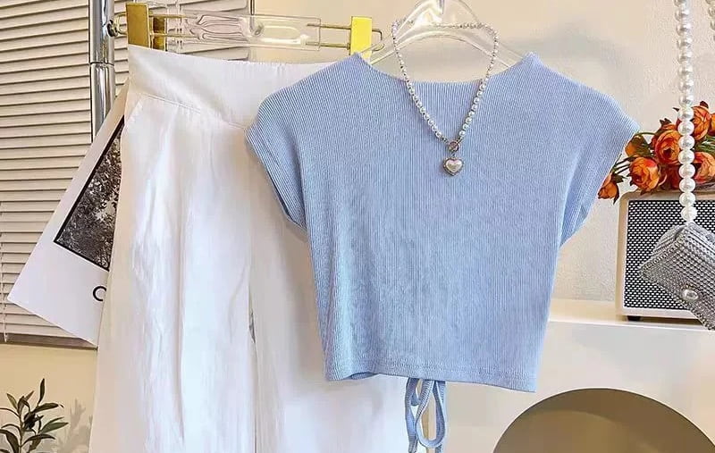 Bagi wanita yang suka tampil kasual, bisa memilih setelan crop top. Setelan tersebut bisa dipadukan dengan cardigan atau kemeja sebagai outer. Bisa juga memadukannya dengan rok atau celana.